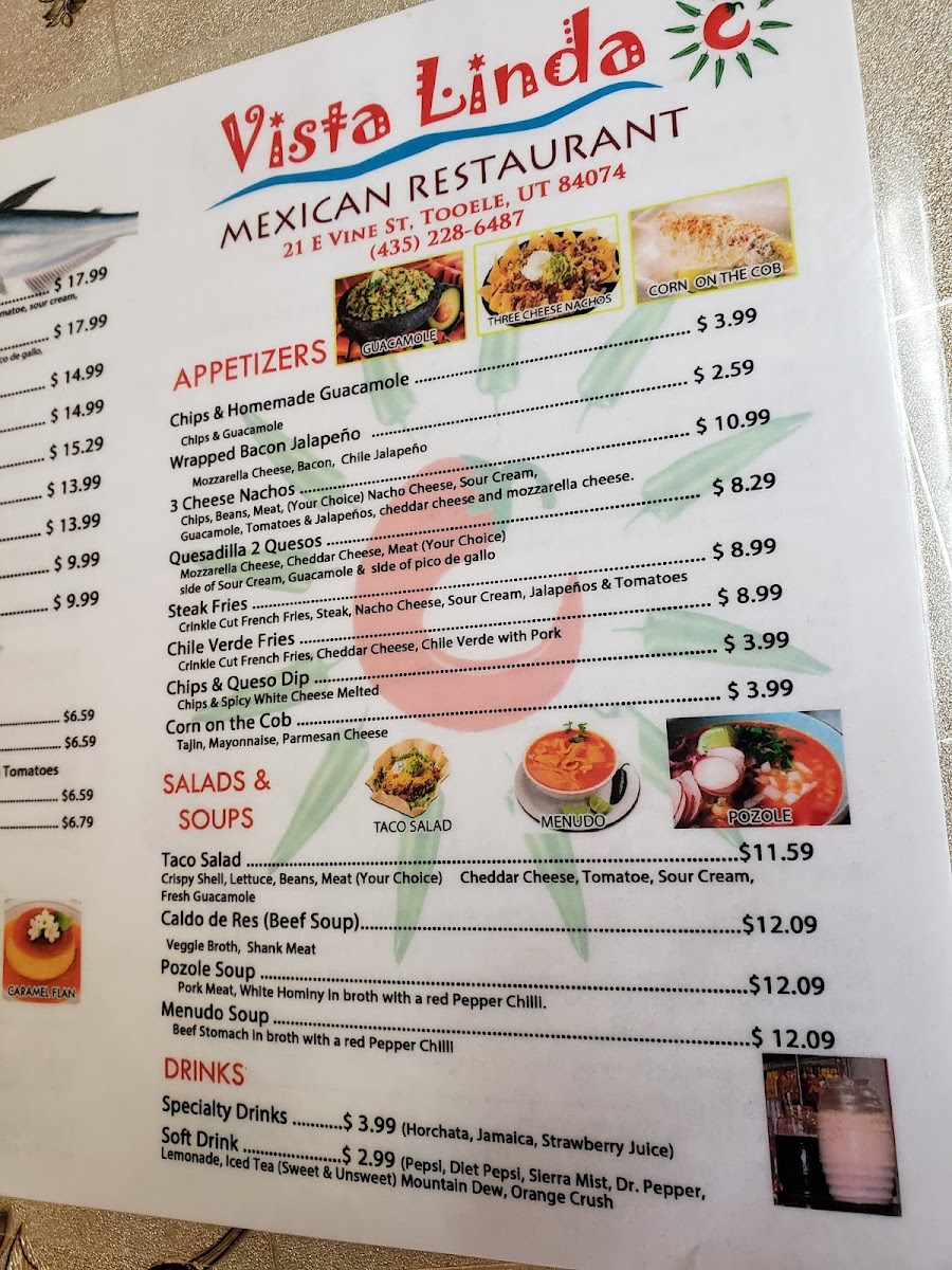 Introducing Vista Linda, a charming Mexican restaurant nestled in Tooele, Utah. Located at 21 E Vine St, this culinary gem offers a delightful array of authentic dishes that celebrate vibrant flavors and fresh ingredients. Their menu features enticing options like the Shrimp Burrito with grilled shrimp and zesty green sauce, and the Chile Relleno, a smoky poblano pepper filled with cheese. For heartier meals, try their Quesadilla Platter or the Cheesy Shrimp served with rice, lettuce, and pico de gallo.